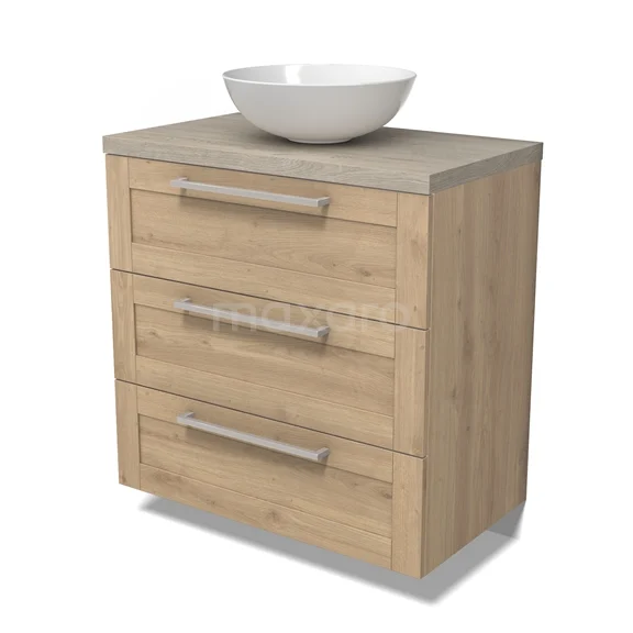 Modulo Plato Vanity units for countertop basin | 80 cm Light brown oak Frame front Light grey oak worktop 3 drawers