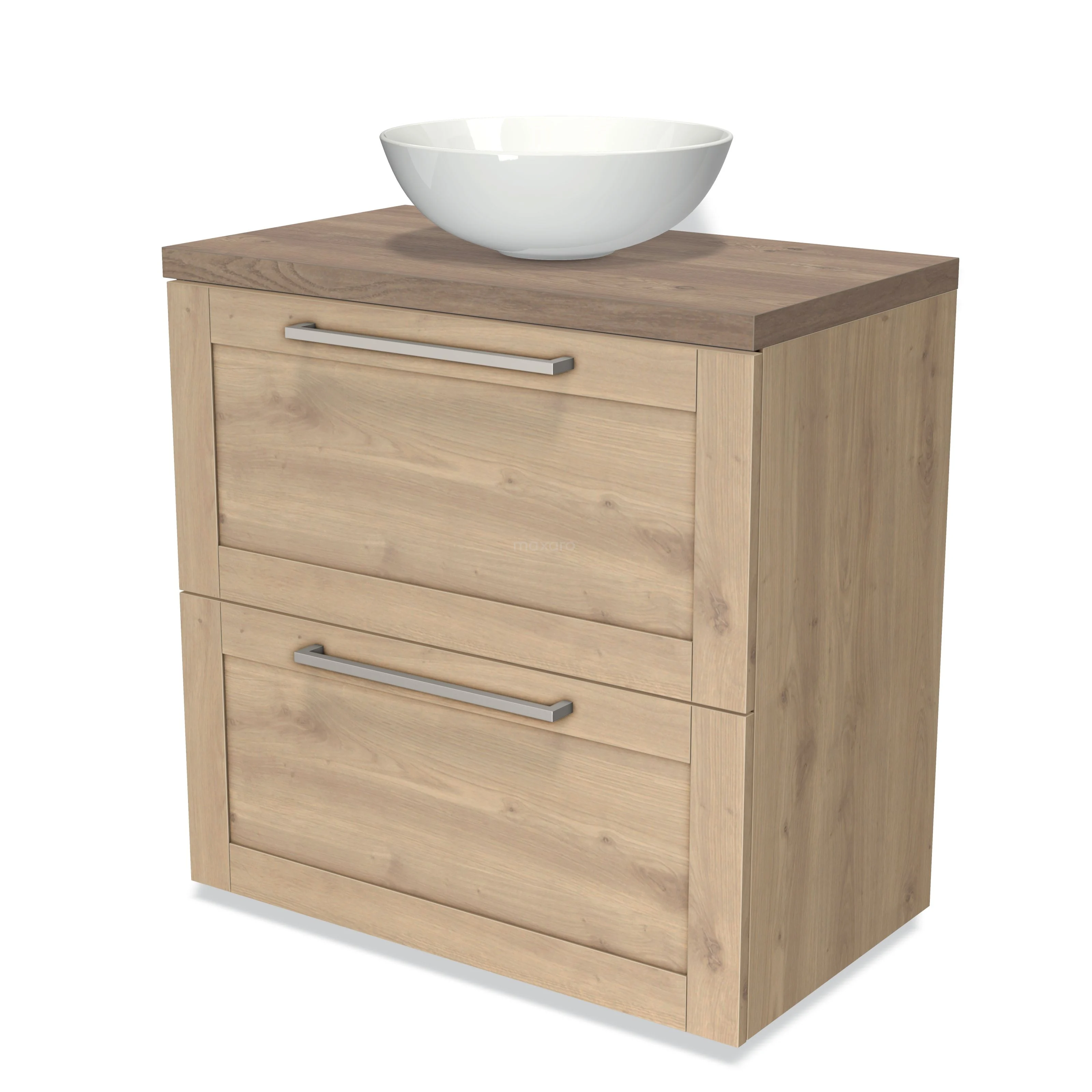 Modulo Plato Vanity units for countertop basin | 80 cm Light brown oak Frame front Mid brown oak worktop 2 stacked drawers under each other