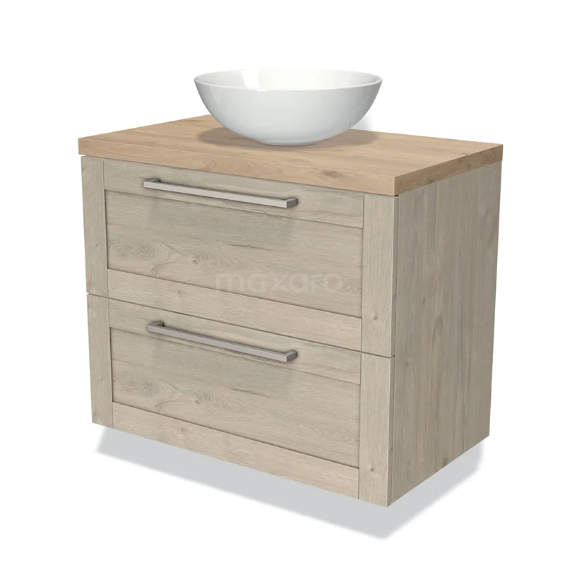 Modulo Plato Vanity units for countertop basin | 80 cm Light grey oak Bordered front Light brown oak worktop 2 Stacked drawers