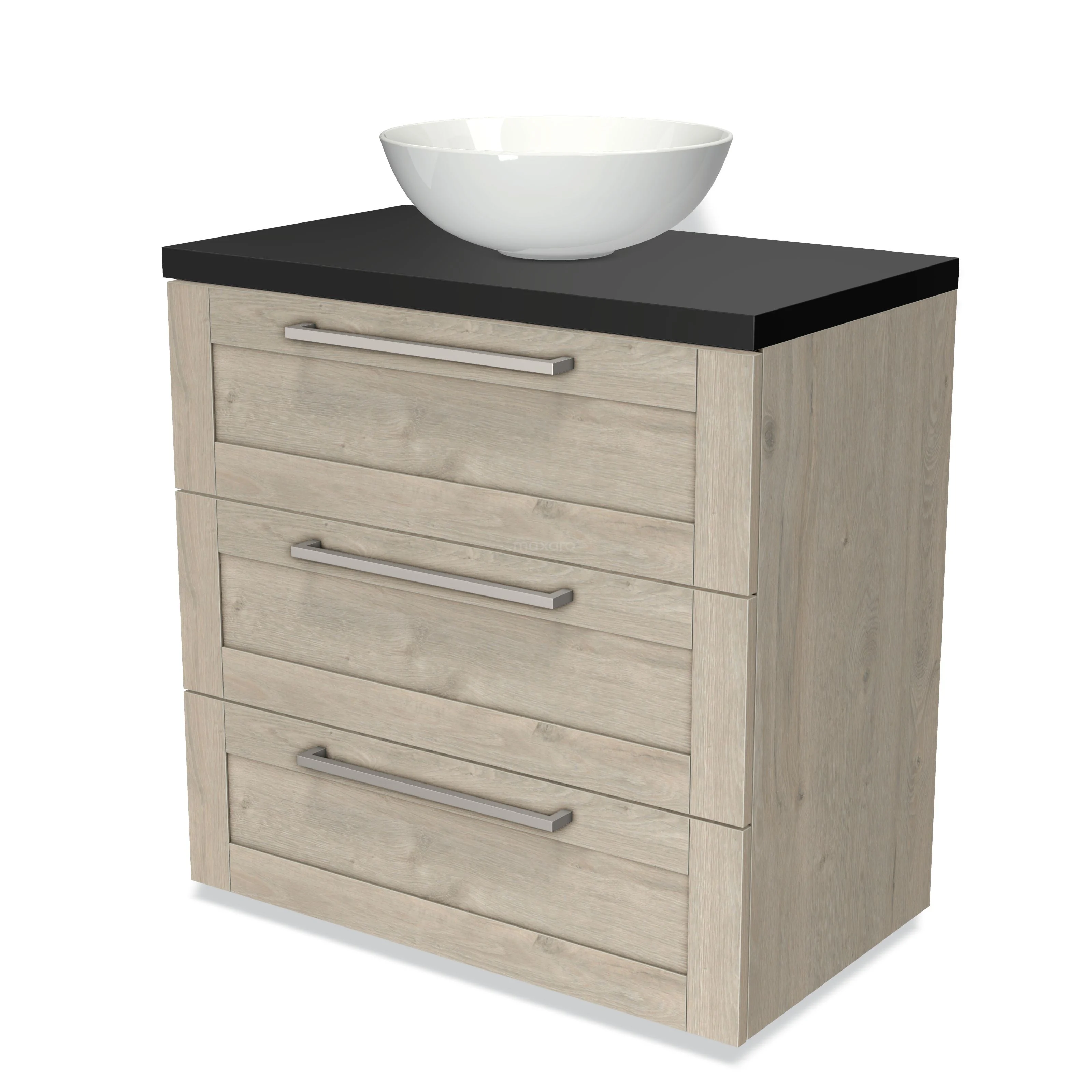 Modulo Plato Vanity units for countertop basin | 80 cm Light grey oak Frame front Matte black worktop 3 drawers