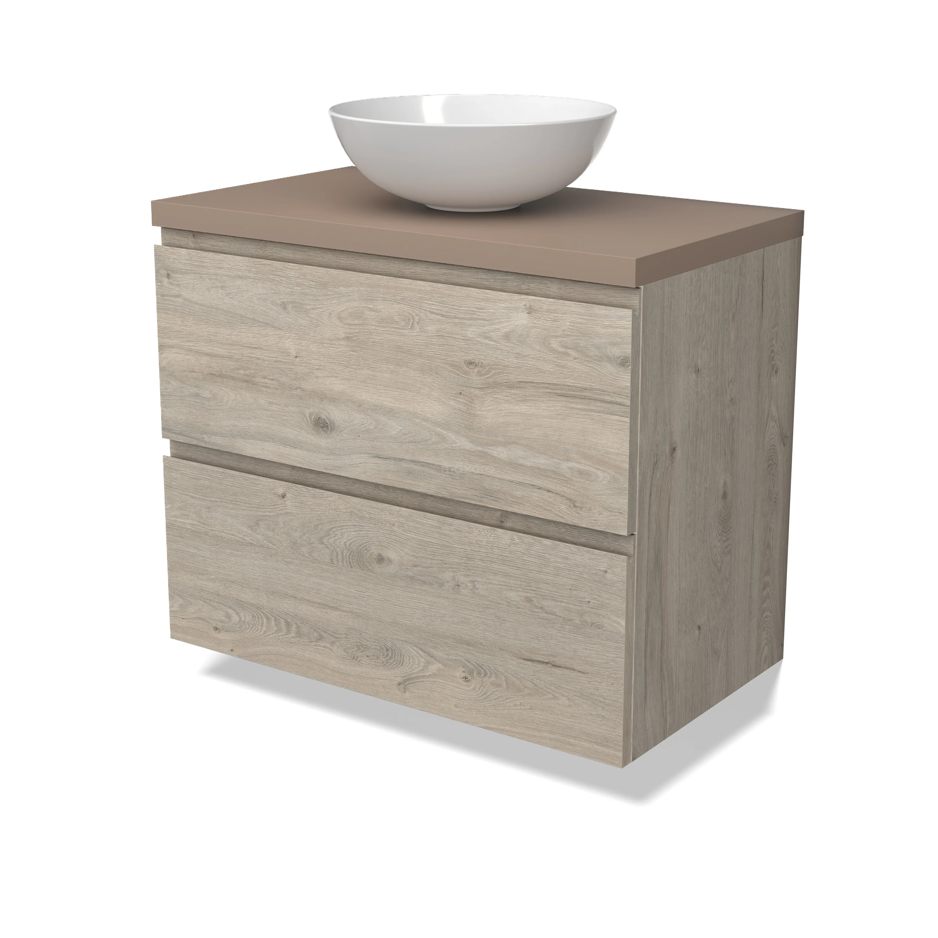 Modulo Plato Vanity units for countertop basin | 80 cm Light grey oak Handle-less front Taupe worktop 2 Stacked drawers