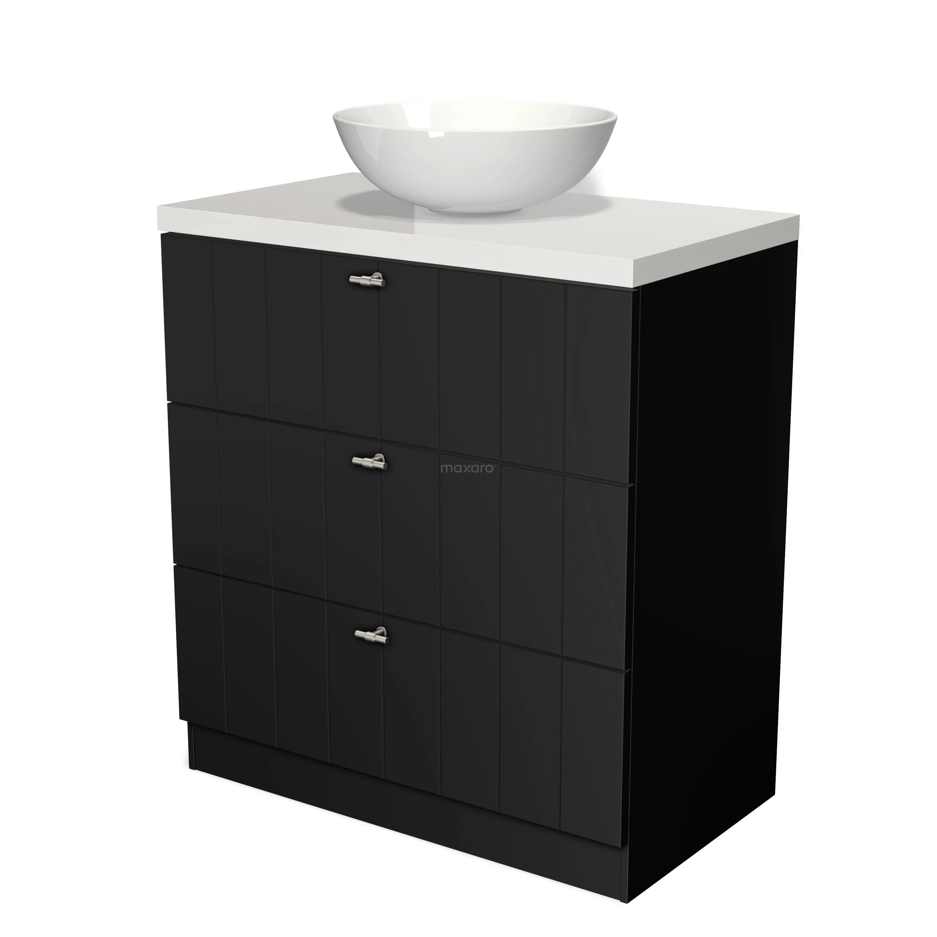 Modulo Plato Vanity units for countertop basin | 80 cm Matte black Slat front High-gloss white worktop 3 standing drawers