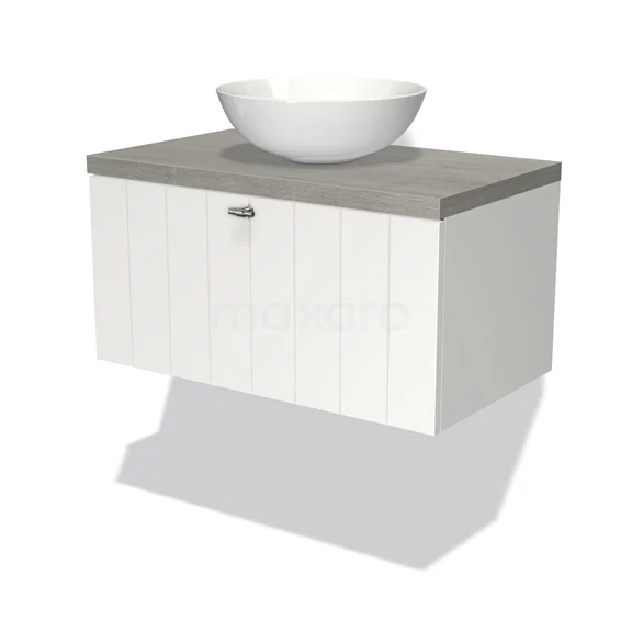 Modulo Plato Vanity units for countertop basin | 80 cm Matte white Slat front Grey oak worktop 1 drawer