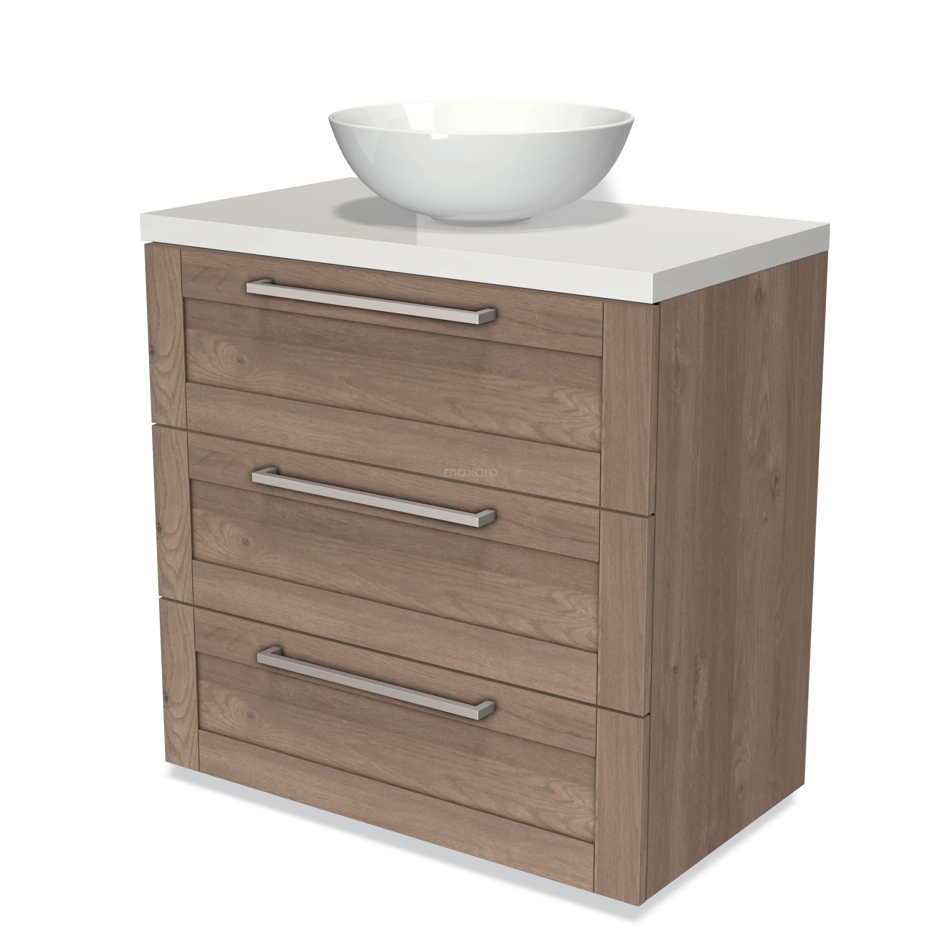 Modulo Plato Vanity units for countertop basin | 80 cm Mid brown oak Frame front High-gloss white worktop 3 drawers