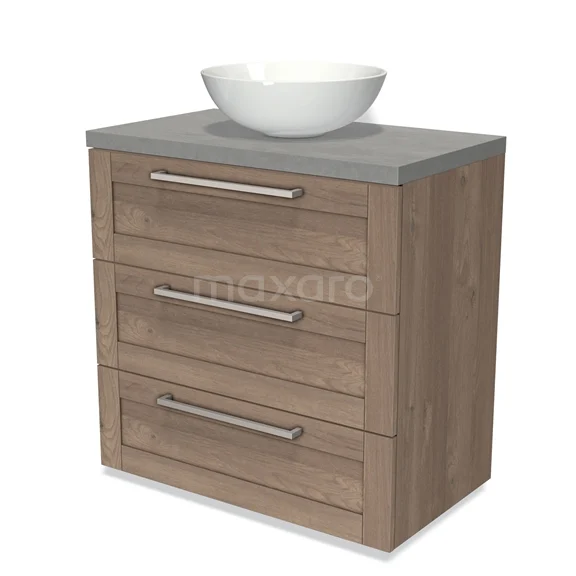 Modulo Plato Vanity units for countertop basin | 80 cm Mid brown oak Frame front Light grey concrete worktop 3 drawers