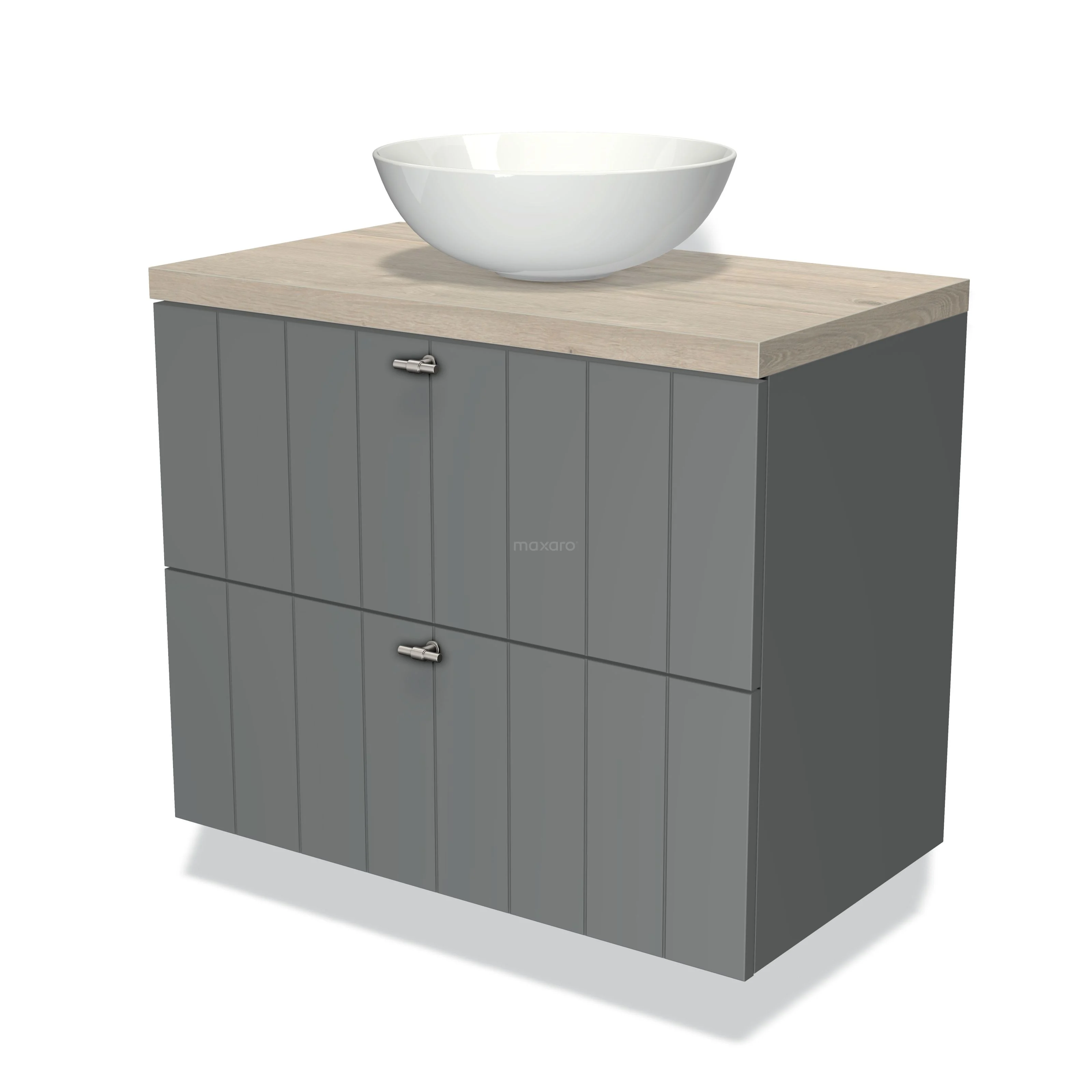 Modulo Plato Vanity units for countertop basin | 80 cm Mid grey Slat front Light grey oak worktop 2 Stacked drawers