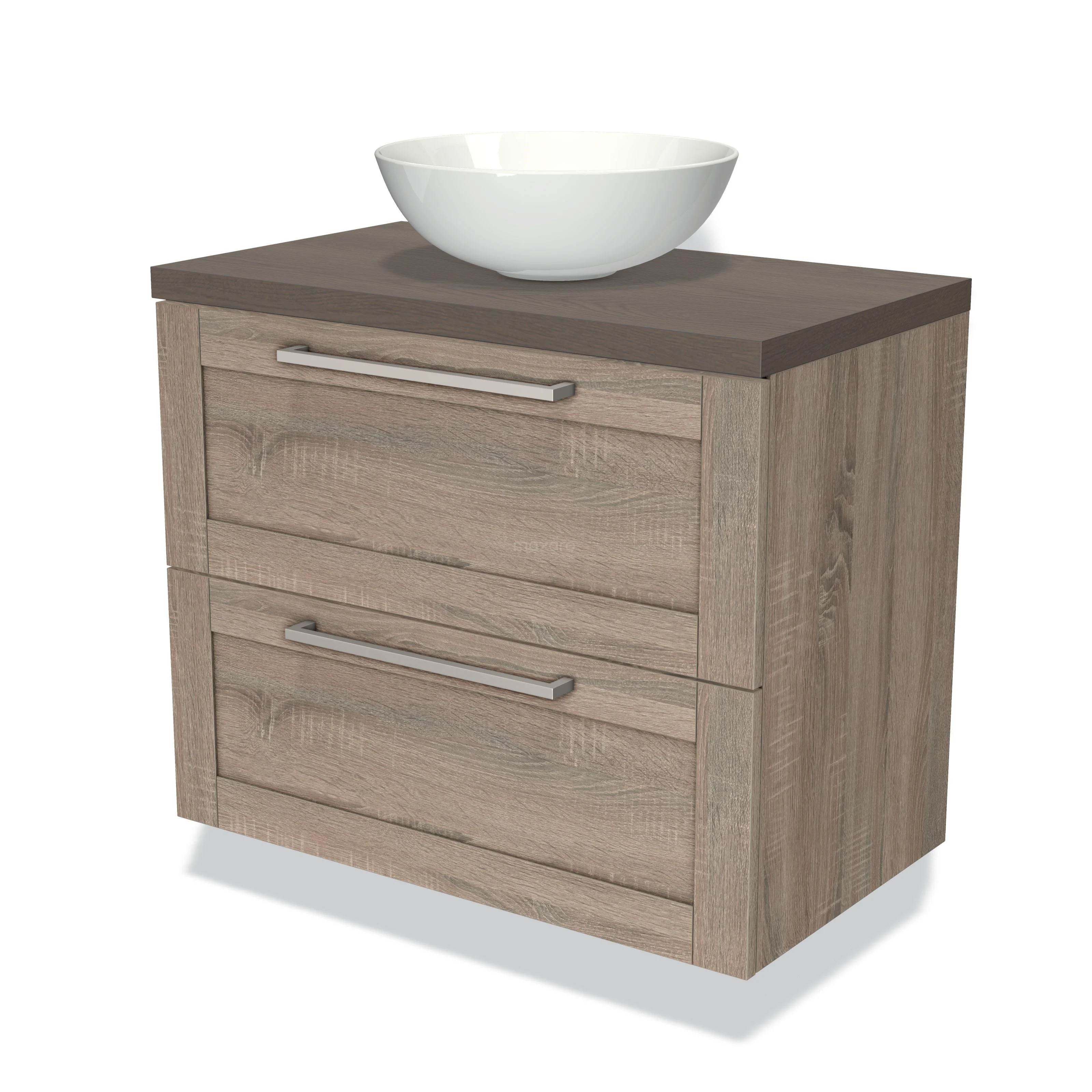 Modulo Plato Vanity units for countertop basin | 80 cm Oak Bordered front Dark brown oak worktop 2 Stacked drawers