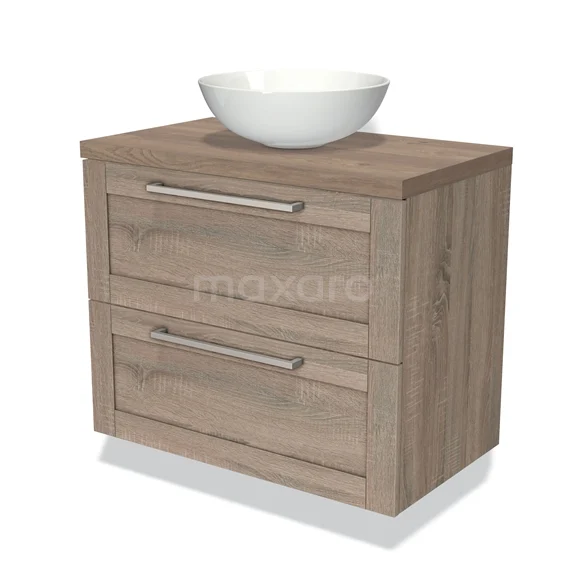 Modulo Plato Vanity units for countertop basin | 80 cm Oak Bordered front Mid brown oak worktop 2 Stacked drawers