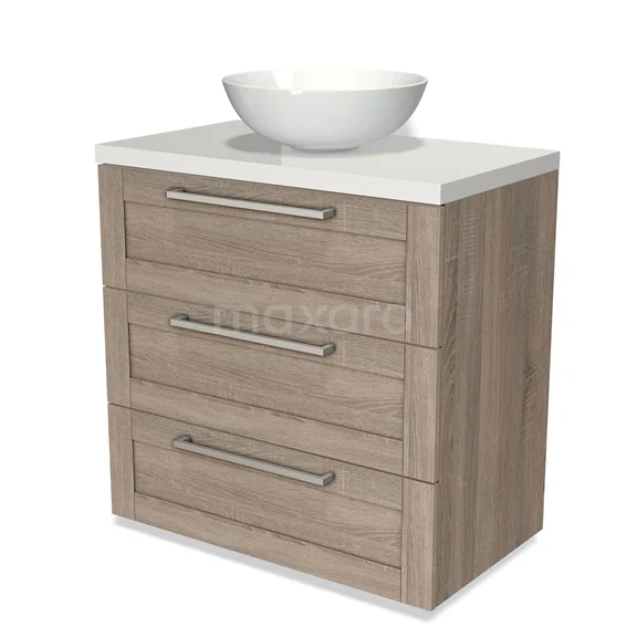 Modulo Plato Vanity units for countertop basin | 80 cm Oak Frame front High-gloss white worktop 3 drawers