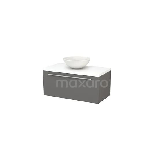 Modulo+ Plato Vanity units for countertop basin | 90 cm Basalt Flat front Matte white worktop 1 drawer