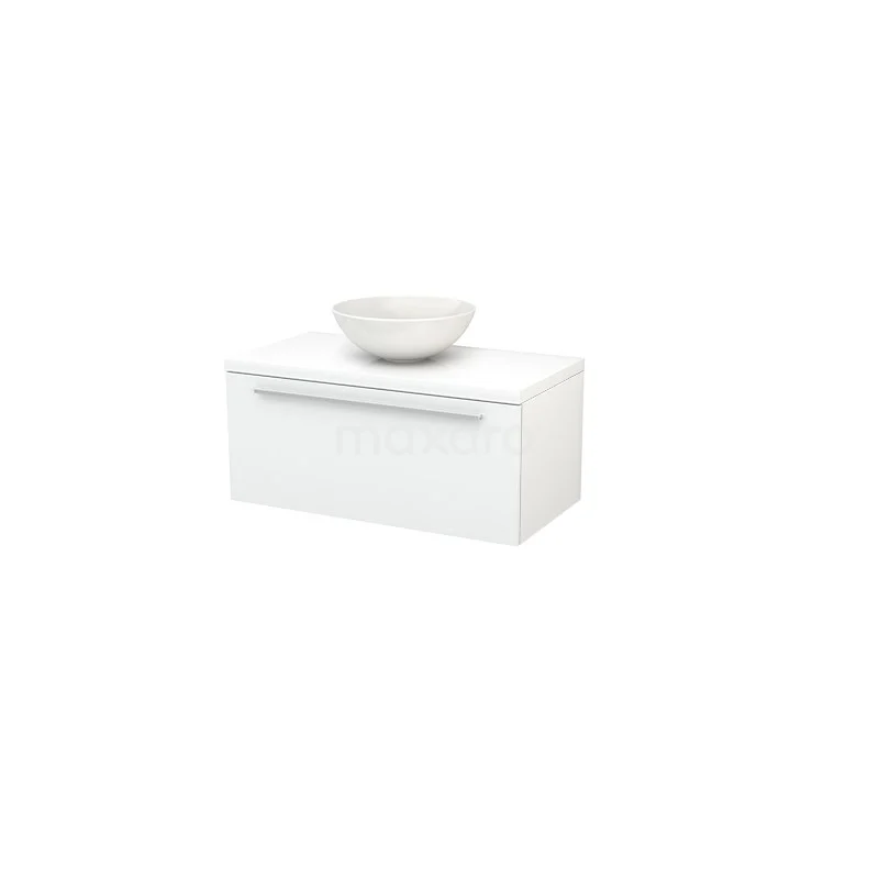 Modulo+ Plato Vanity units for countertop basin | 90 cm High-gloss white Flat front High-gloss white worktop 1 drawer