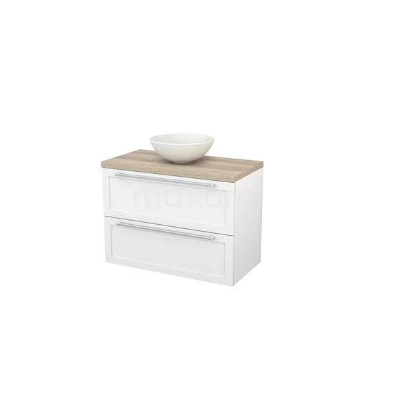 Modulo+ Plato Vanity units for countertop basin | 90 cm High-gloss white Frame front Oak worktop 2 Stacked drawers