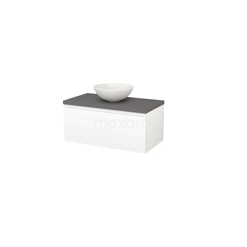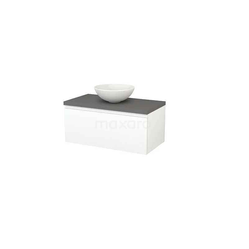 Modulo+ Plato Vanity units for countertop basin | 90 cm Matte white Handle-less front Basalt worktop 1 drawer