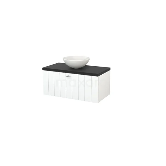 Modulo+ Plato Vanity units for countertop basin | 90 cm Matte white Slat front Carbon worktop 1 drawer
