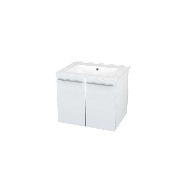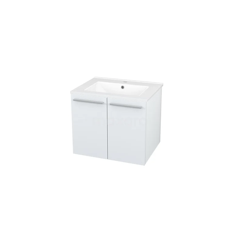 Box Bathroom furniture with sink | 60 cm Matte white front Ceramic 2 doors