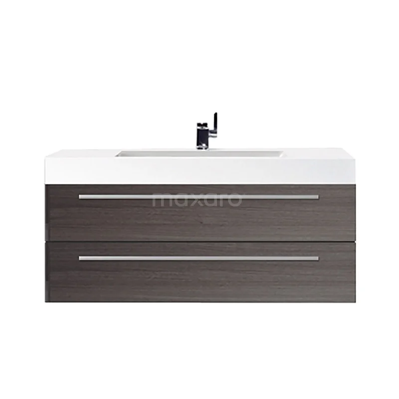 Stylish design The stylish design makes this bathroom unit the eye-catcher of your bathroom. The base cabinet is finished in dark brown ash, making it ideal for creating a warm atmosphere in the interior. The timeless aluminium L-shaped handles have a matte finish and complete the picture.
