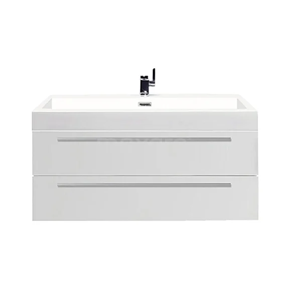 Stylish design The beautiful design of this Bathroom unit is a stylish addition to your bathroom. The white base cabinet has a high-gloss finish and is the ideal base for any style. The colour also creates a fresh look. The matt aluminium L-shaped handles have a timeless look.