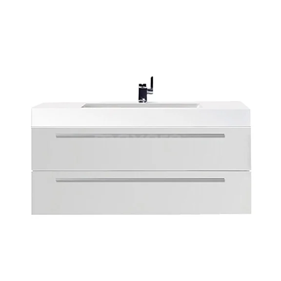 Stylish design Thanks to its stylish design, this beautiful bathroom unit will be the eye-catcher of your bathroom. The high-gloss white base cabinet has a fresh look and is the perfect base for any interior. The timeless aluminium L-shaped handles have a matte finish and complete the picture.
