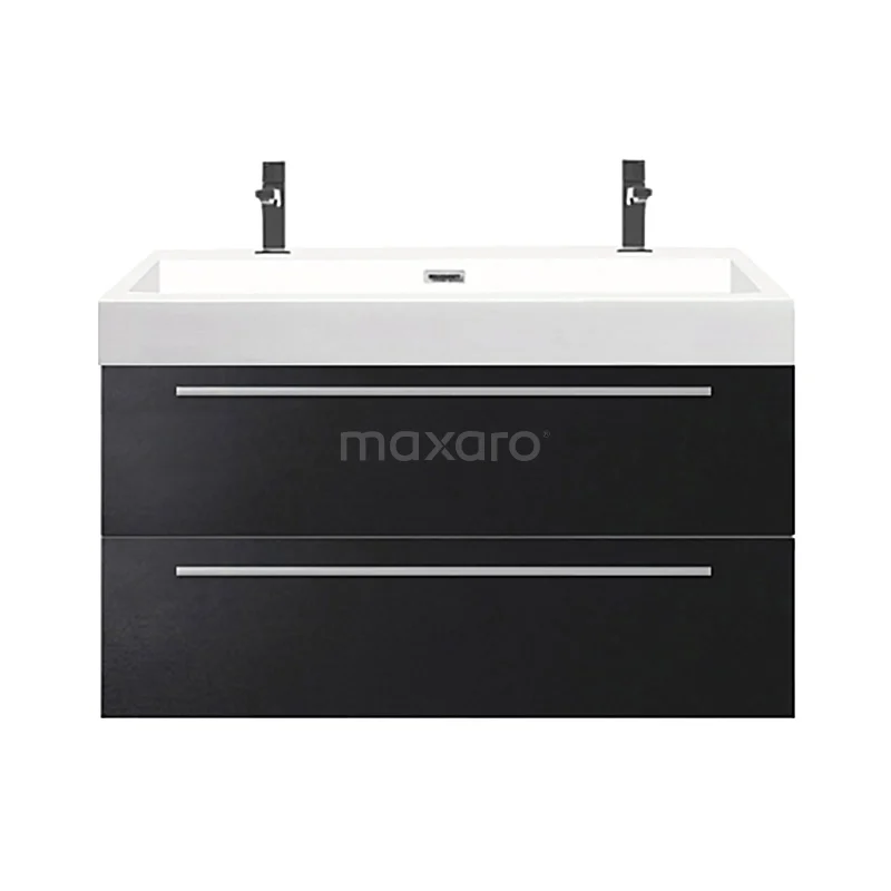 Canto Bathroom furniture with sink | 100 cm Matte black front Mineral marble 2 Stacked drawers