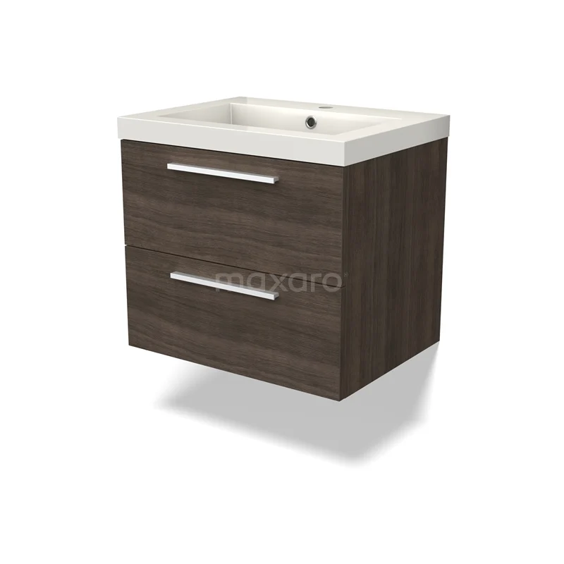 Canto Bathroom furniture with sink | 60 cm Dark brown ash front Mineral marble 2 Stacked drawers