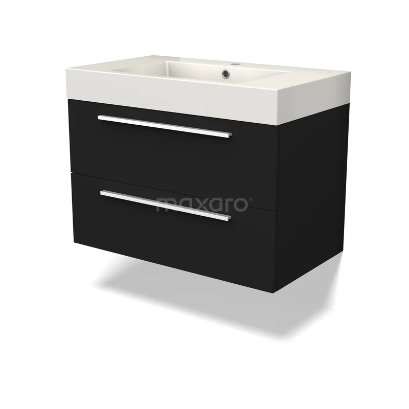 Canto Bathroom furniture with sink | 80 cm Black front Mineral marble 2 Stacked drawers