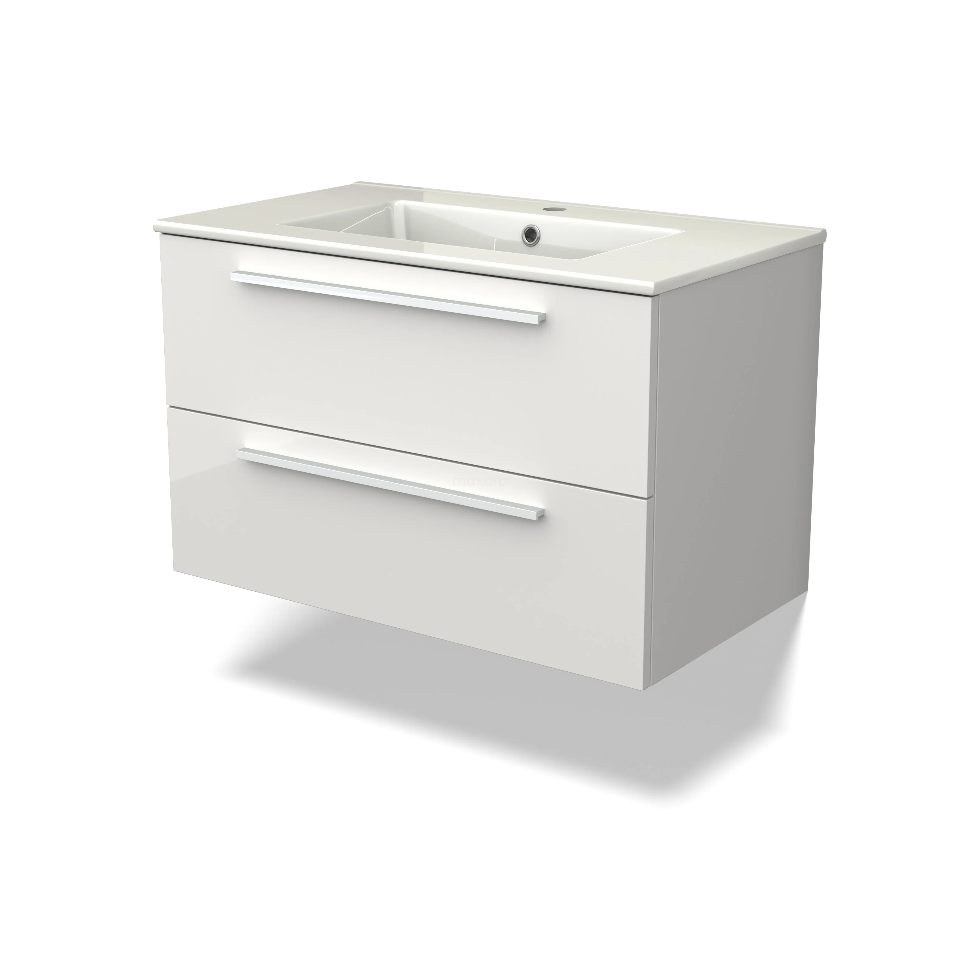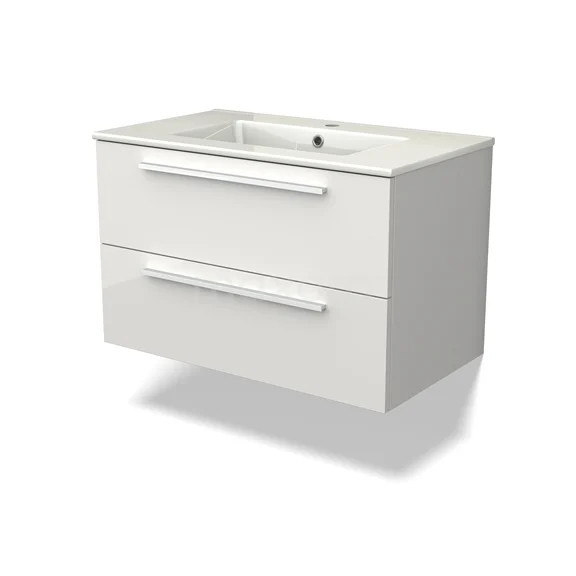 Canto Bathroom furniture with sink | 80 cm High-gloss white front Ceramic 2 Stacked drawers