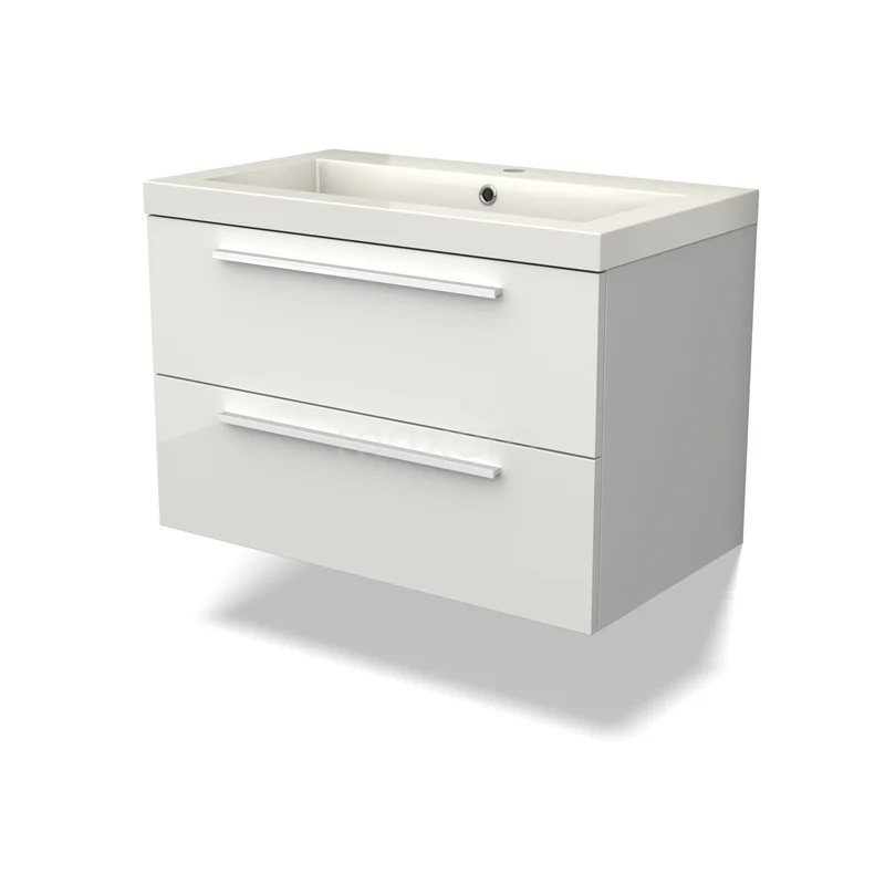 Canto Bathroom furniture with sink | 80 cm High-gloss white front Mineral marble 2 Stacked drawers