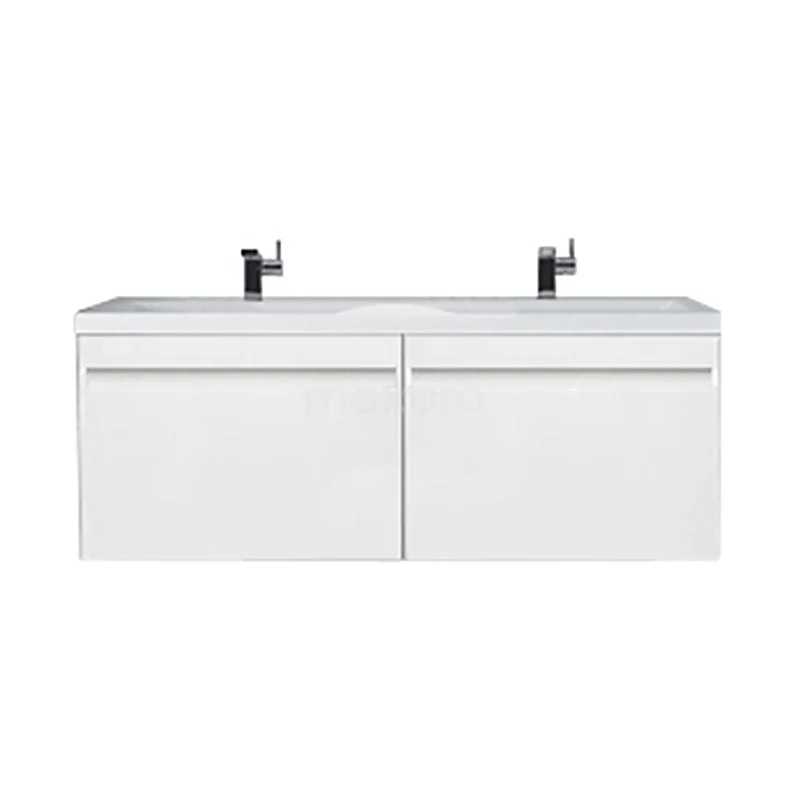 Curve Bathroom furniture with sink | 144 cm High-gloss white front Mineral marble 2 Side-by-side drawers