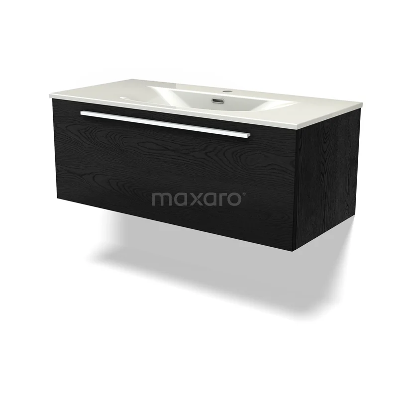 Modulo Bathroom furniture with sink | 100 cm Black oak Flat front Ceramic 1 drawer