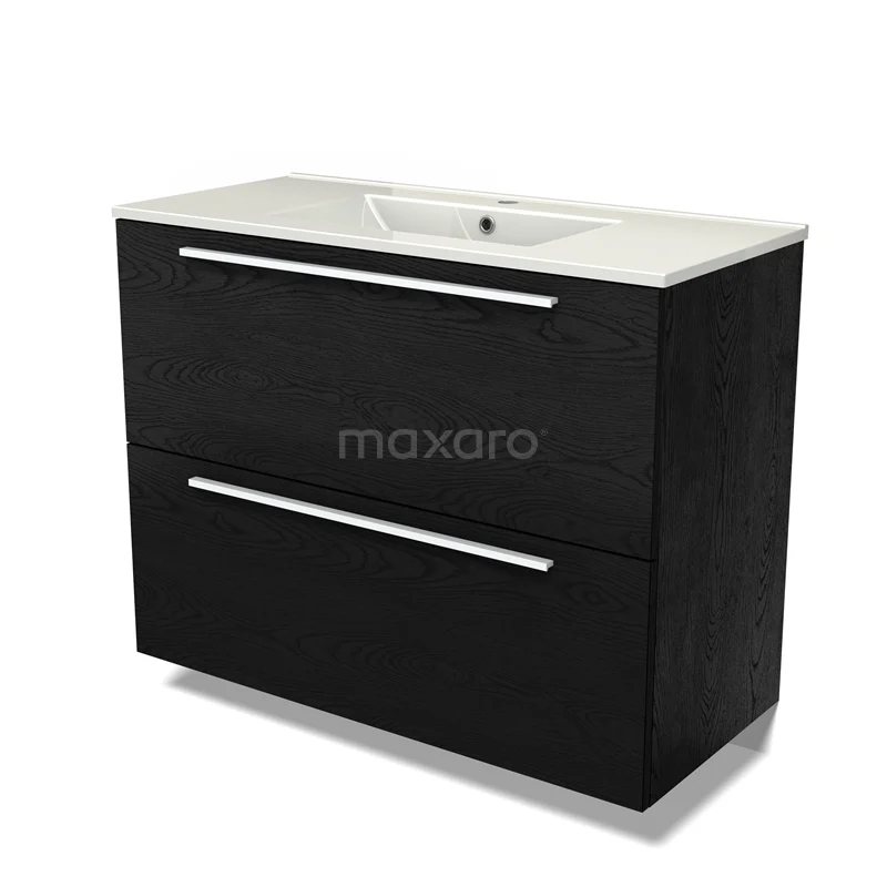 Modulo Bathroom furniture with sink | 100 cm Black oak Flat front Ceramic 2 stacked drawers under each other
