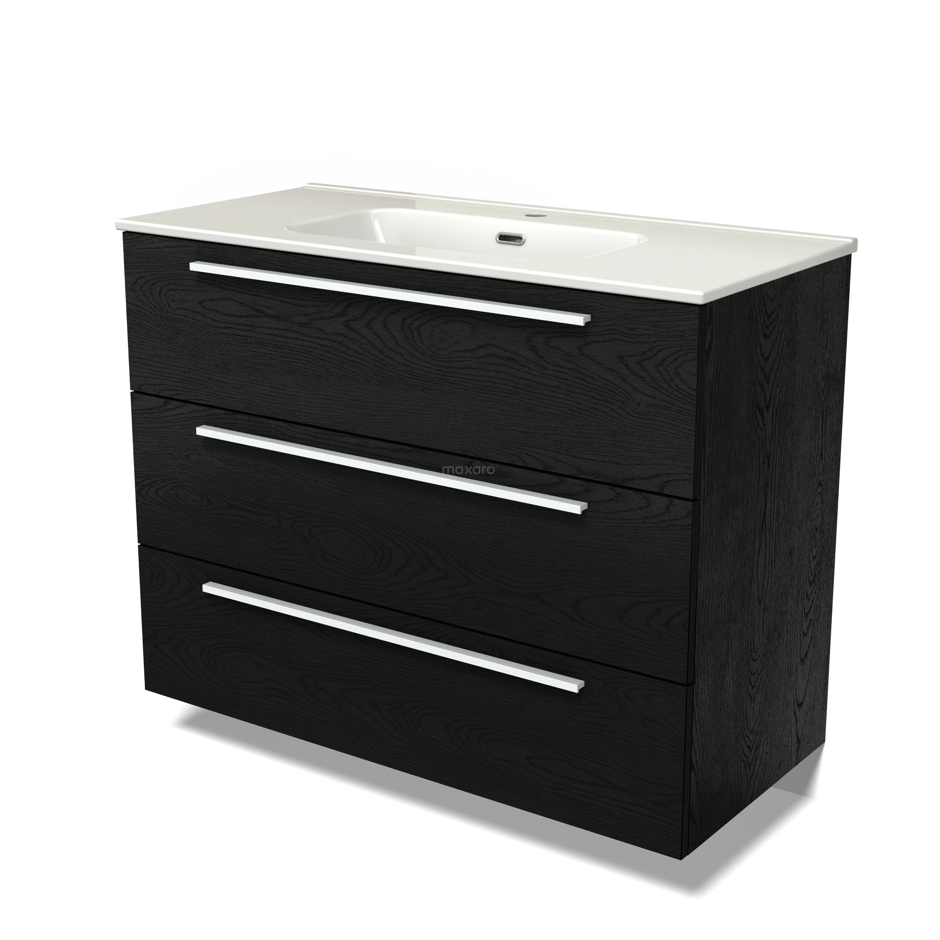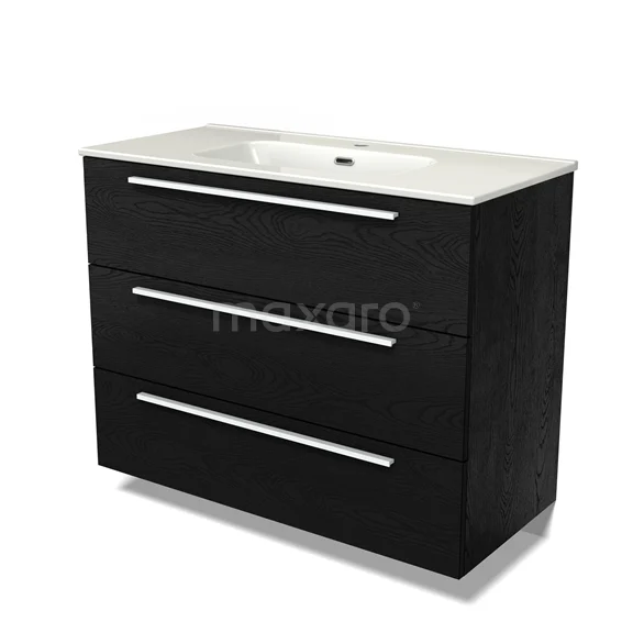 Modulo Bathroom furniture with sink | 100 cm Black oak Flat front Ceramic 3 drawers