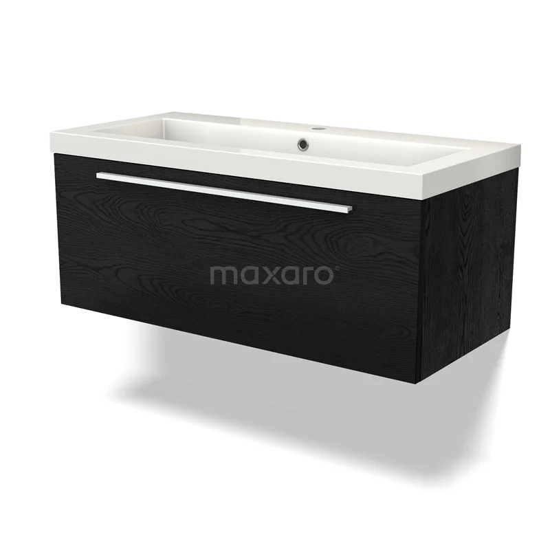 Modulo Bathroom furniture with sink | 100 cm Black oak Flat front Mineral marble 1 drawer
