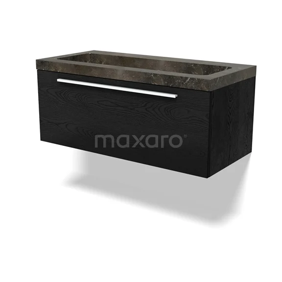 Modulo Bathroom furniture with sink | 100 cm Black oak Flat front Natural stone 1 drawer