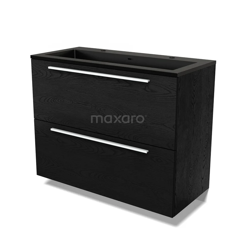 Modulo Bathroom furniture with sink | 100 cm Black oak Flat front Quartz 2 stacked drawers under each other