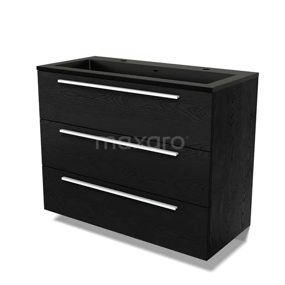 Modulo Bathroom furniture with sink | 100 cm Black oak Flat front Quartz 3 drawers