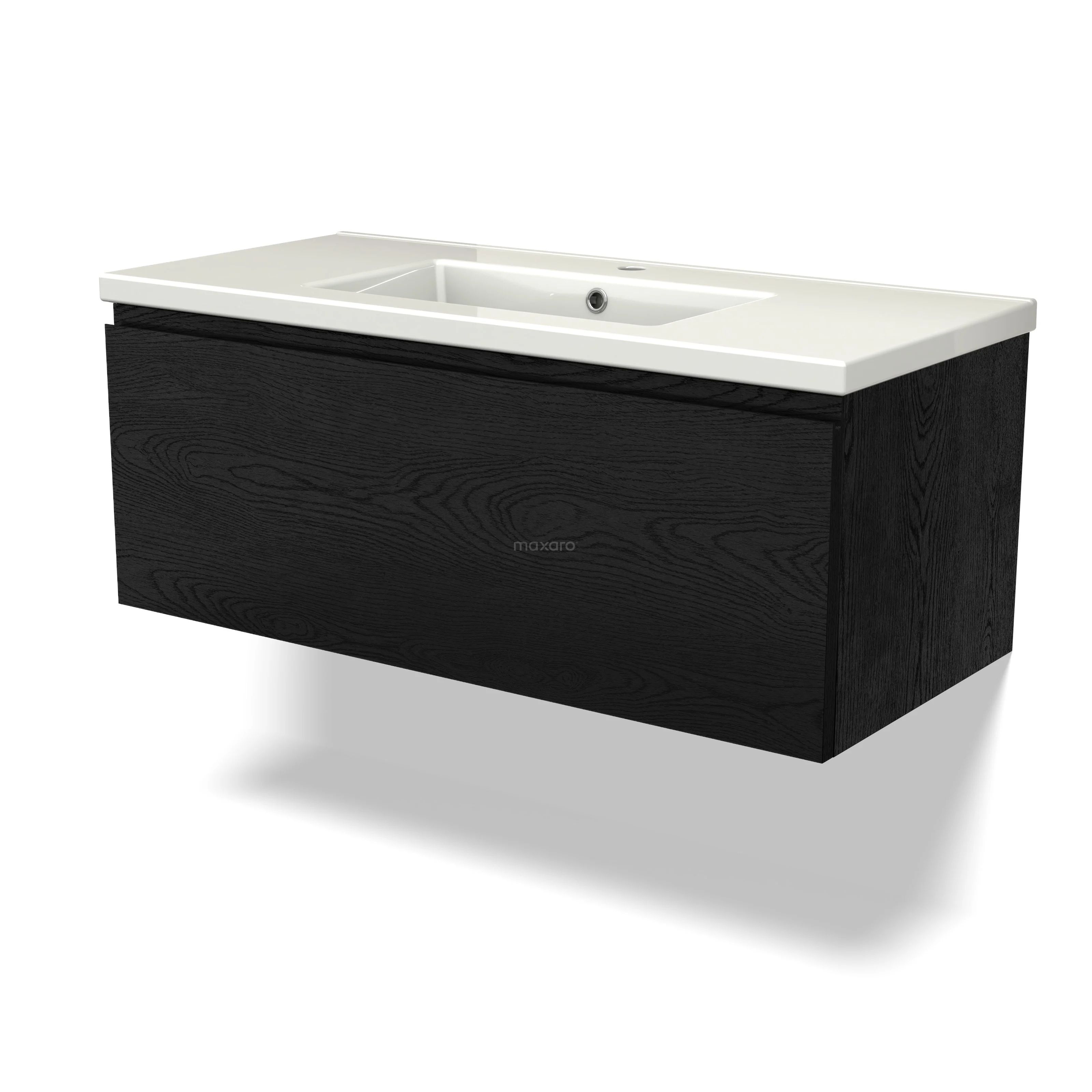 Modulo Bathroom furniture with sink | 100 cm Black oak Handle-less front Ceramic 1 drawer
