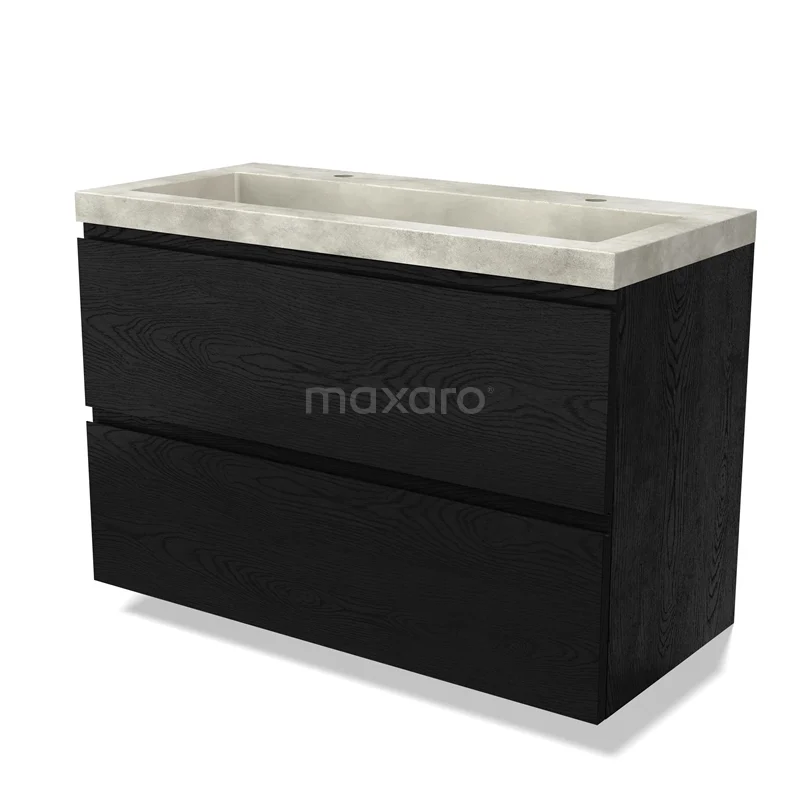 Modulo Bathroom furniture with sink | 100 cm Black oak Handle-less front Concrete 2 Stacked drawers