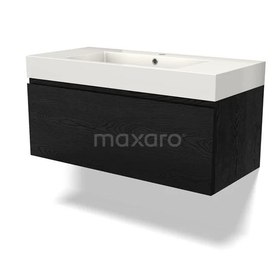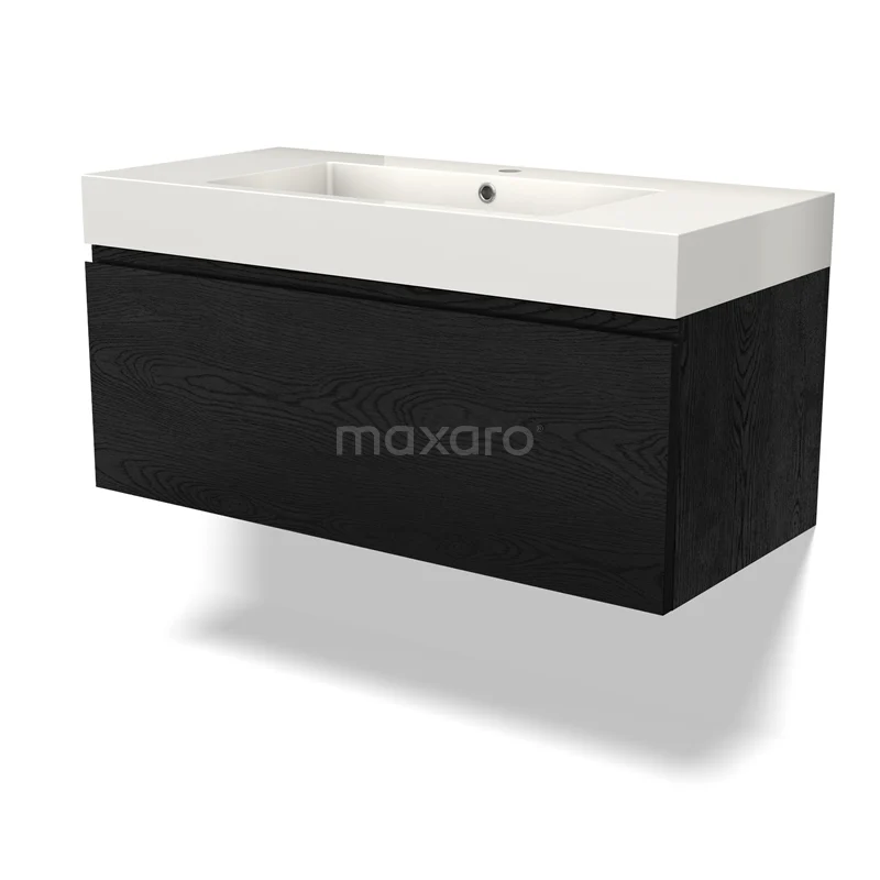 Modulo Bathroom furniture with sink | 100 cm Black oak Handle-less front Mineral marble 1 drawer