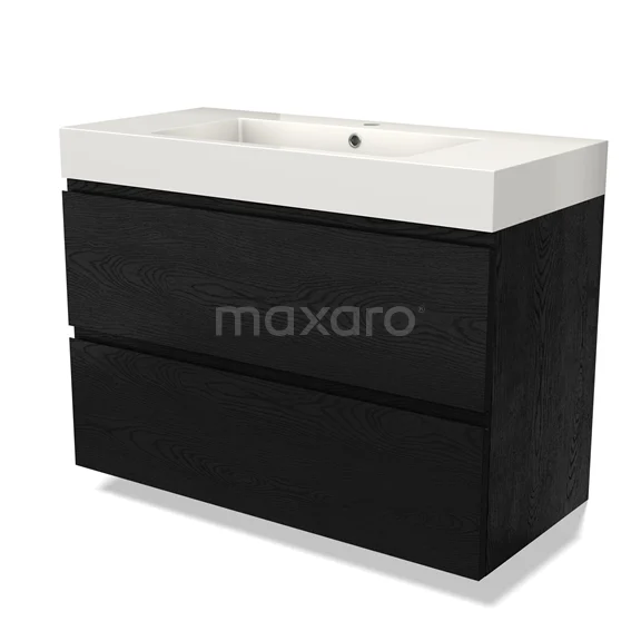 Modulo Bathroom furniture with sink | 100 cm Black oak Handle-less front Mineral marble 2 Stacked drawers