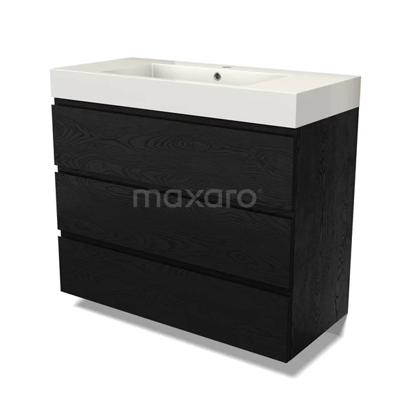 Modulo Bathroom furniture with sink | 100 cm Black oak Handle-less front Mineral marble 3 drawers