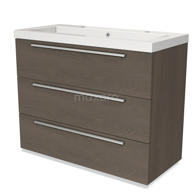 Modulo Bathroom furniture with sink | 100 cm Dark brown oak Flat front Mineral marble 3 drawers