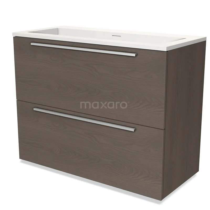 Modulo Bathroom furniture with sink | 100 cm Dark brown oak Flat front Solid surface 2 stacked drawers under each other