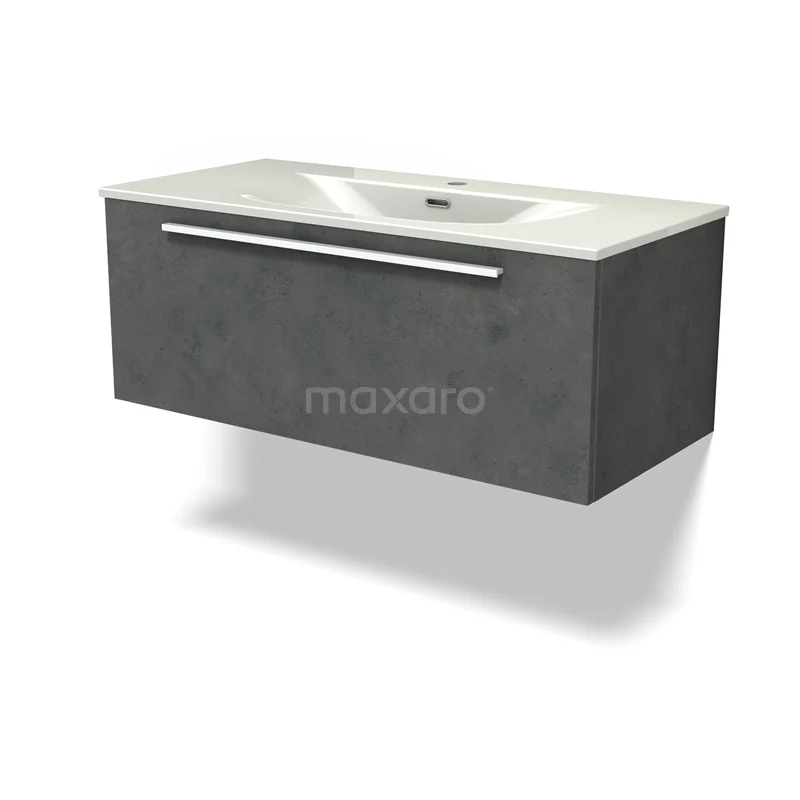 Modulo Bathroom furniture with sink | 100 cm Dark grey concrete Flat front Ceramic 1 drawer