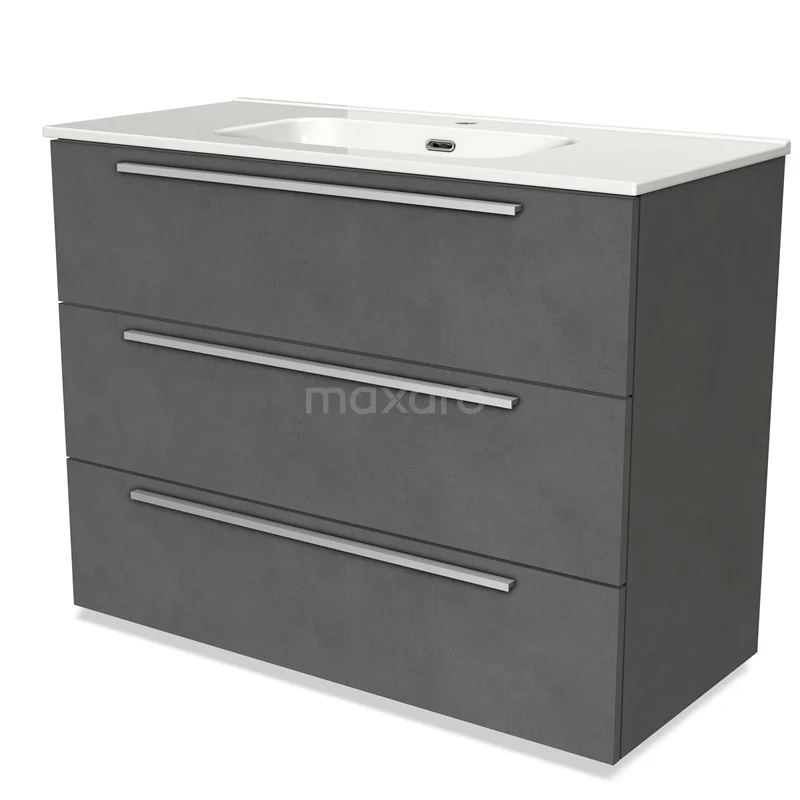 Modulo Bathroom furniture with sink | 100 cm Dark grey concrete Flat front Ceramic 3 drawers
