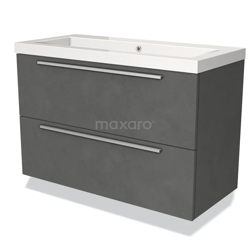 Modulo Bathroom furniture with sink | 100 cm Dark grey concrete Flat front Mineral marble 2 Stacked drawers