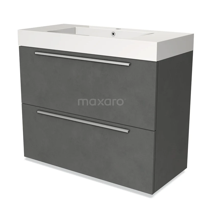 Stylish design The stylish design makes this bathroom unit the eye-catcher of your bathroom. The base unit has a flat front and has a Dark grey concrete finish. This tough concrete look gives your bathroom interior an industrial look-and-feel. In addition, the flat front provides a timeless touch. You need to joint the handles yourself. These are available in different colours and shapes.