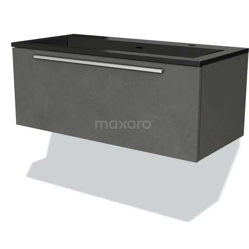 Modulo Bathroom furniture with sink | 100 cm Dark grey concrete Flat front Quartz 1 drawer