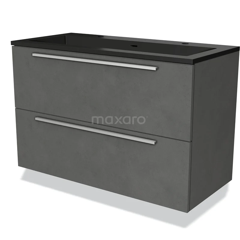 Modulo Bathroom furniture with sink | 100 cm Dark grey concrete Flat front Quartz 2 Stacked drawers