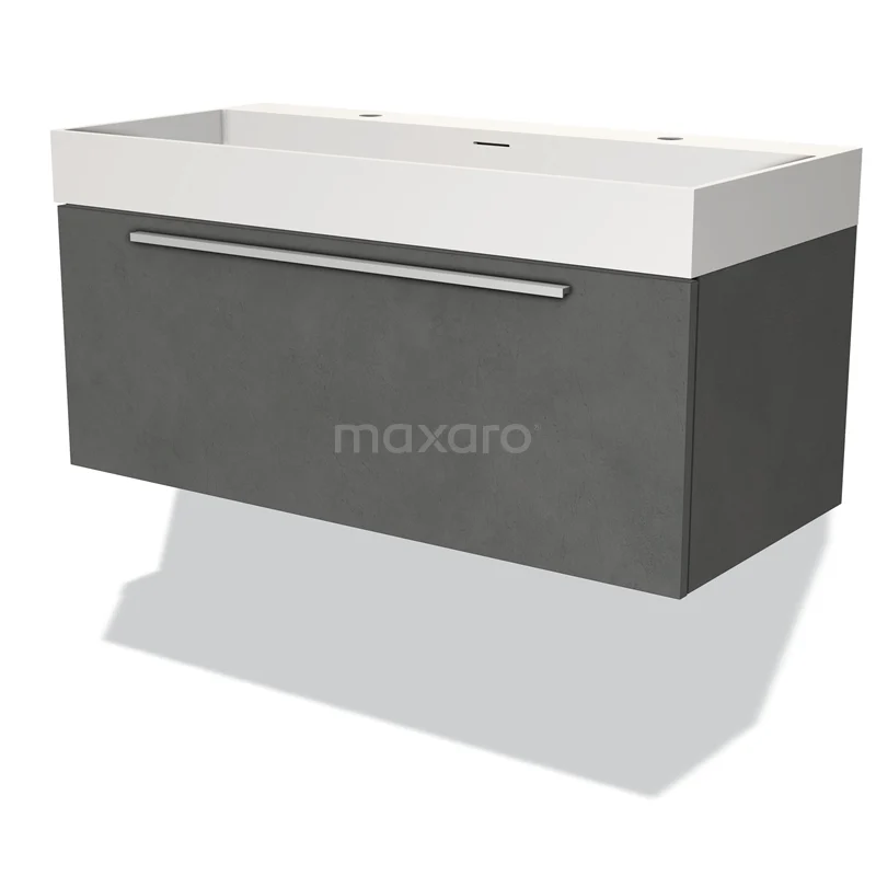 Modulo Bathroom furniture with sink | 100 cm Dark grey concrete Flat front Solid surface 1 drawer