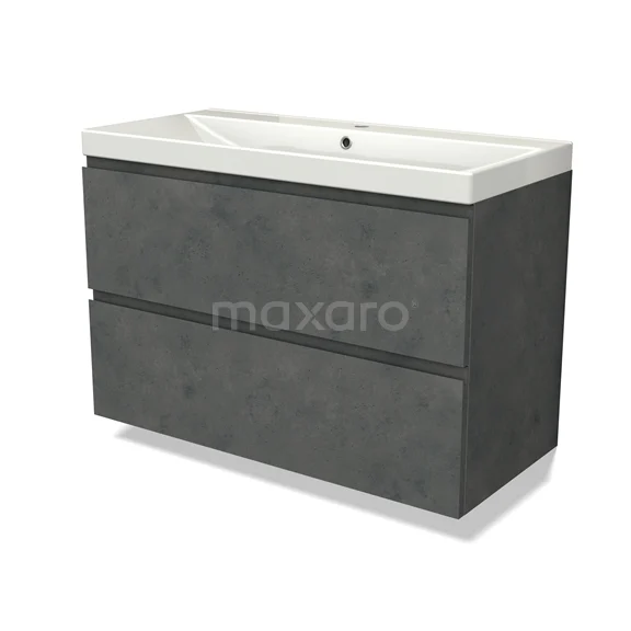 Modulo Bathroom furniture with sink | 100 cm Dark grey concrete Handle-less front Ceramic 2 Stacked drawers